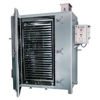 Pharmaceutical Tray Dryer is of robust construction built on formed angles of 3mm thick sheet and suitably reinforced with angles and sections. The dryers external walls are manufactured from 1.6mm thick Stainless Steel sheets of 304 quality. The internal of the dryer is built of 1.6 mm thick S.S 304 quality sheets. The internal structure is fully TIG welded and all the internals have ground smooth surfaces.